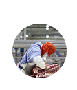 我們在分割過程中注重員工安全防護,公司統一配置的“不銹鋼手套及不銹鋼圍裙”,以及刀具全部為美國“查維斯”專業用具,有效杜絕操作潛在安全隱患。