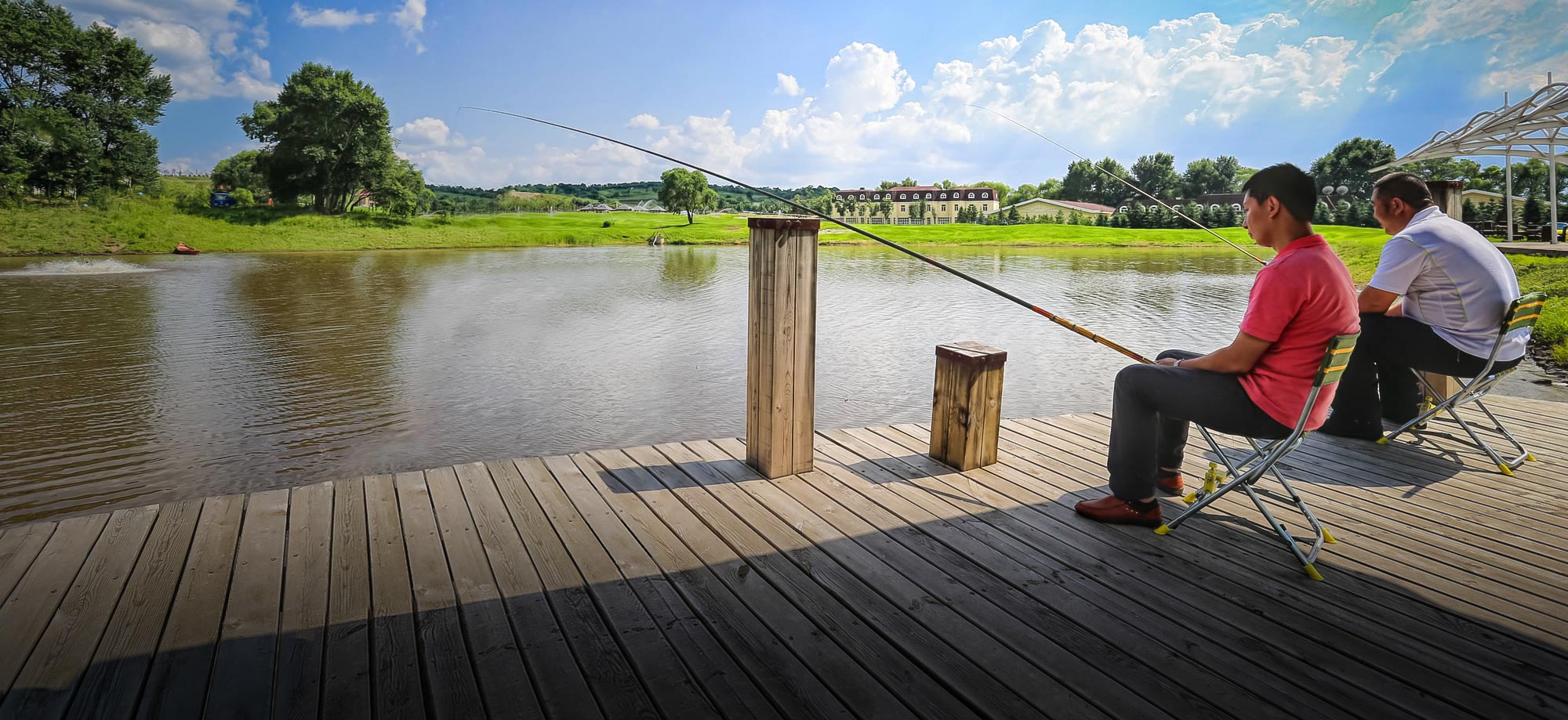 莊園東北角設置有原生態魚池,與草地、藍天、小丘一起營造了毫無人工雕琢痕跡的自然生態環境;無污染的飼養條件,豐富的魚種,讓垂釣者感受不同的垂釣樂趣。