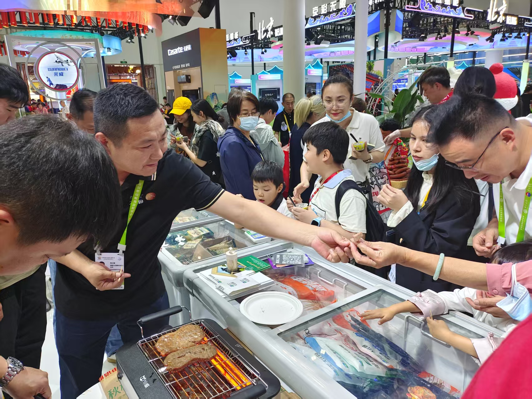 大莊園集團攜火鍋、燒烤、西餐等系列產品驚艷亮相,展位前吸引了眾多國內外客商和消費者,美味誘人的牛羊好肉讓觀眾大飽口福。
